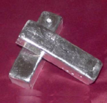 銀白色塊狀,溶于酸,不溶于沸水及堿性溶液中