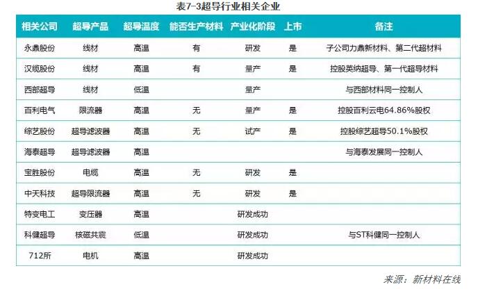 表7-3超導行業(yè)相關(guān)企業(yè)